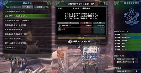 納品依頼は、ストーリーを進めて、調査拠点にいる住民に話しかけることで受けることができます。納品依頼をクリアすると、「新規のベースキャンプの場所」「収納BOXの拡張」「特殊装具」「料理の食材」など、モンハンワールドで必須のアイテム、システムが手に入ります!