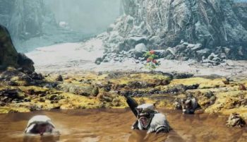 この温泉には、ハンターだけでなく、渡りの凍て地に生息する猿などの環境生物も入浴しにくることも!