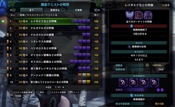 任務クエストで歴戦モンスターの調査クエストを入手!