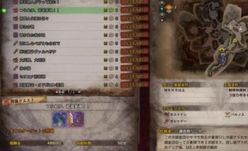 HR49で受注できるクエスト「惰眠と火酒の日々」とHR69で受注できるクエスト「つらぬけ、武闘家魂!」はどちらも歴戦モンスター2頭クエストになります。1回クリアすると受注できないので、クリアする前に、歴戦モンスターの調査クエストがない人は、痕跡を集めてからクリアするのもおすすめです。