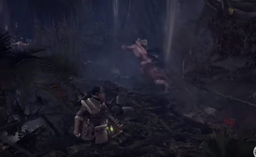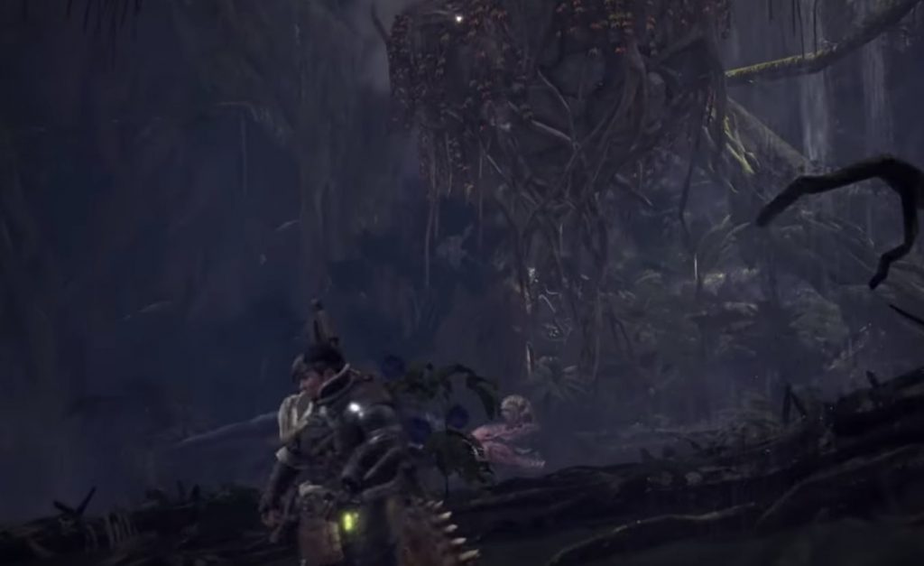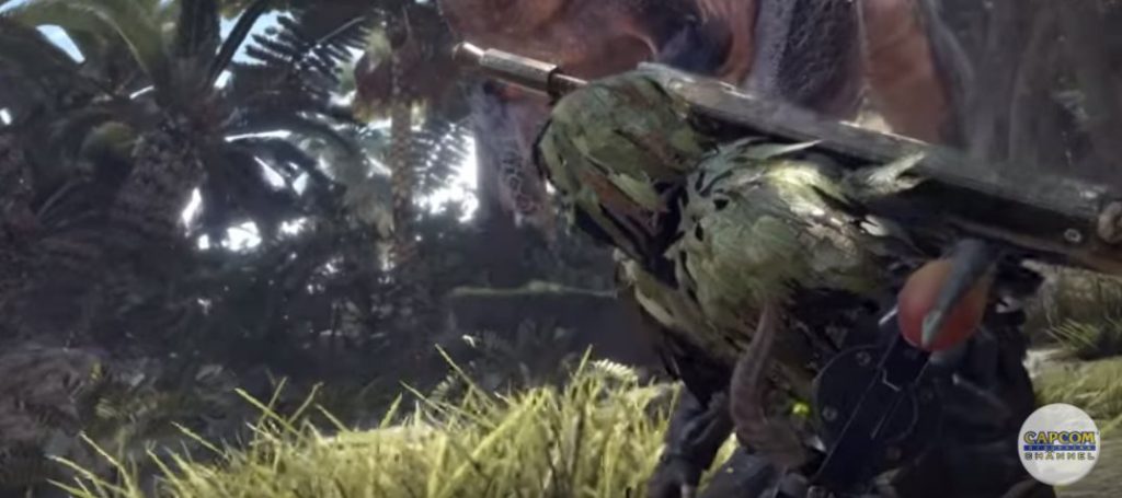 今までのモンハンでは、相手から見つからないようにするには、煙玉などのアイテムで隠れるしかありませんでしたが、今回は、地上に生えている植物を使用し、自然に擬態することができるようです。