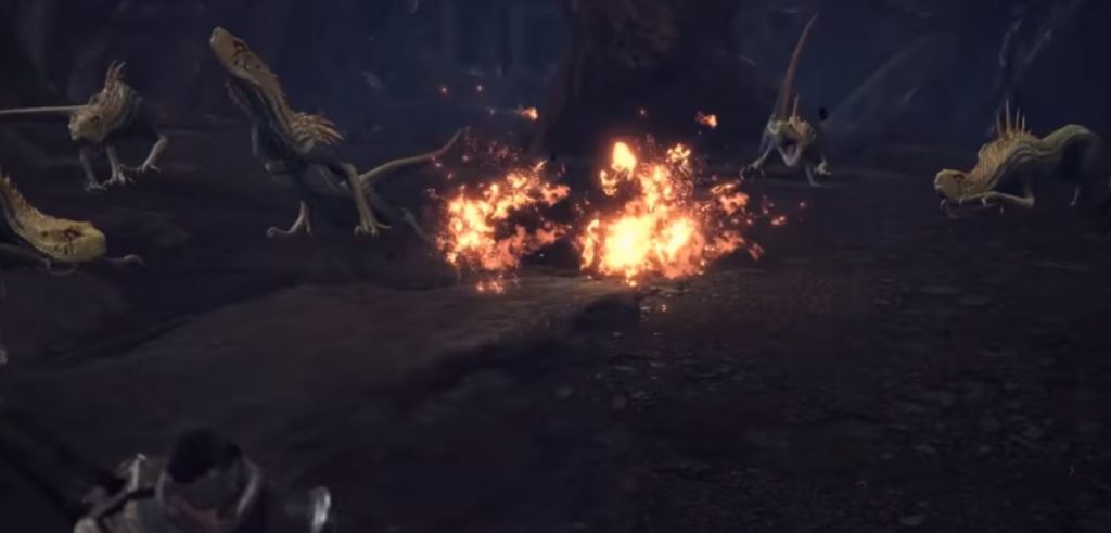 たぶん、小型のモンスターなどだけでしょうが、火を投げるモーションをすると火の場所を避けるようにモンスターが移動します。