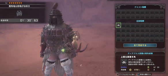 今回はそのディアブロス素材の中でも入手が難しい上質な黒巻き角の効率の良い集め方について紹介していこうと思います!このやり方は、ディアブロスの「上質なねじれた角」「ねじれた角」も同じ方法で入手できるので、こちらの素材が欲しい人も参考にしてみてください