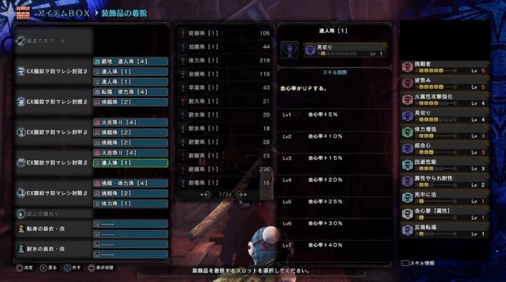 会心カスタムなのでこれで素会心90%、挑戦者発動で100%にしてた