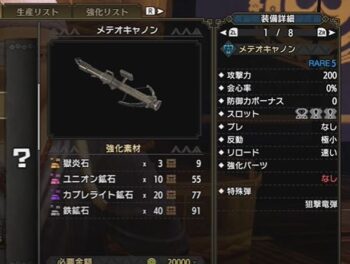 装飾品スロット②①①と優秀だったり、装填拡張でLv3徹甲榴弾が4発も装填できるのはメテオキャノンのみ。またすべての状態異常弾も撃つことができます。