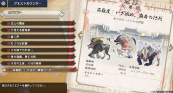 里クエストをすべてクリアした後に、フゲンに話しかけると「高難度:いざ挑め、覇者の行列」というクエストを受注できるようになります。このクエストをクリア後に頭装備『炎の封眼』を生産できるようになります。
