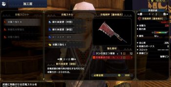 切れ味4型無属性強化減気3の百竜剣斧で攻撃200減気40