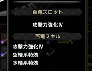 攻撃力が10上がる「攻撃力強化Ⅳ」が宝刀カムラノおすすめ百竜スキルです。