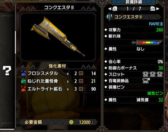 火力ならビシュテンゴ亜種のスラアクなんだろうが拘束力でコンクエスタもいいなぁ