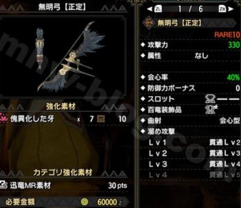 ナルガクルガ弓の解放条件、必要強化素材【マスター】