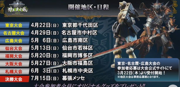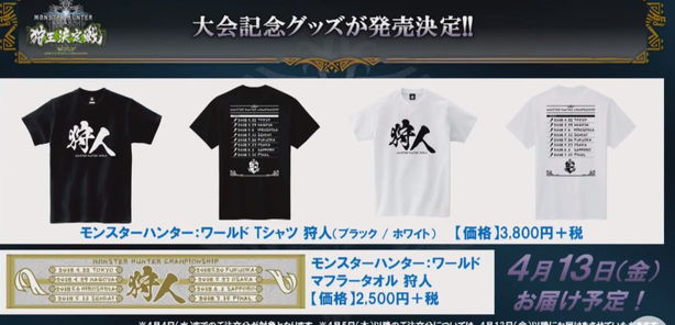 大会記念グッズが発売予定、モンハンワールドTシャツとマフラータオル