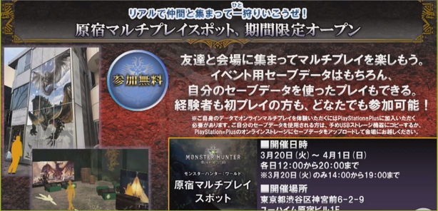 当日参加はもちろんのこと、WEBでの事前予約も受付しています。詳しくはモンハンワールドの公式サイトをご確認ください。