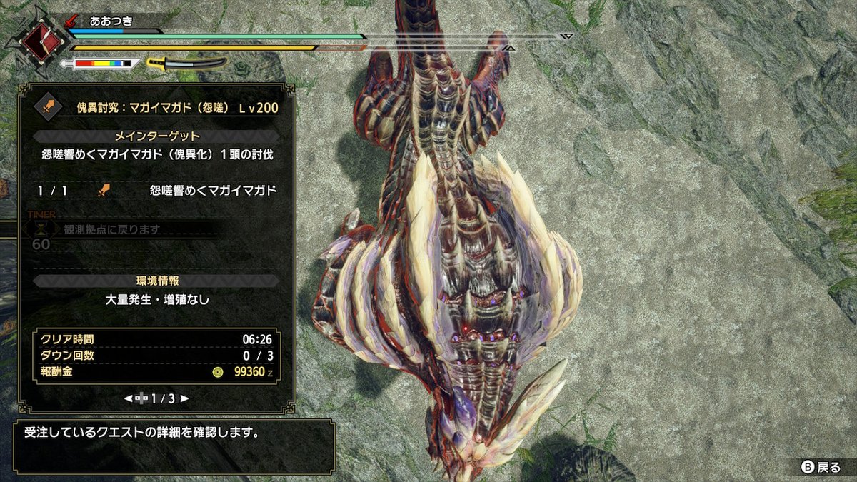 ほぼ理想通りの動きができ満足ですが、百竜装飾品を付け忘れていてやらかしました。