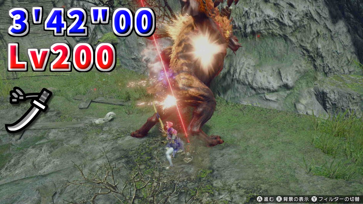 サンブレイク初太刀TA。火事場にはなりましたが無事に3分台出ました。乙狩りちゃん。