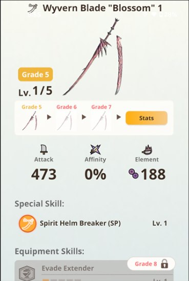 | 脚 | SPスキル威力アップLv2 龍属性攻撃強化Lv1(グレード6) |