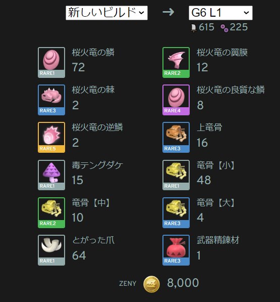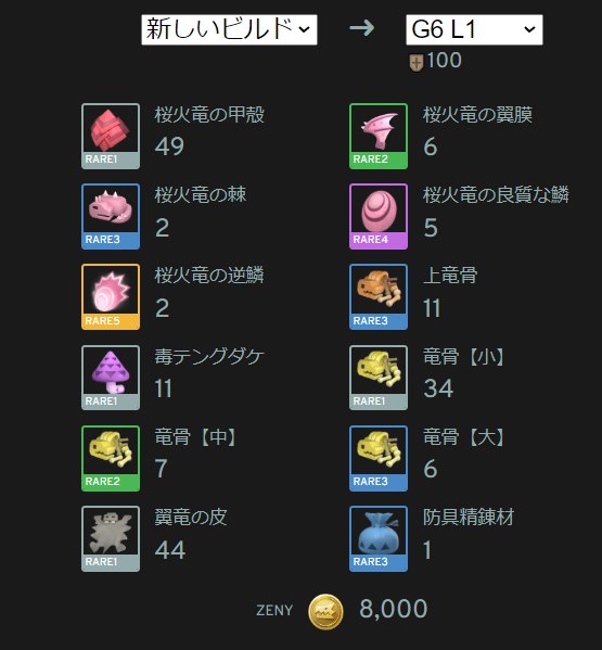 レイア亜種の腰6にするのに必要な素材の合計教えてくれや
