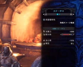 コンテスト大剣の性能はスペシャル生放送の時に少し画面に映っていました。ただ、この下の画像の数値は防具のスキルが発動した状態での攻撃力と会心率なので、本来の能力はこれよりも低いです。