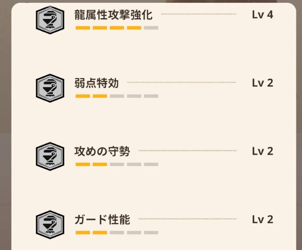 龍おまけ 弱点特攻2、SPスキル威力アップ2、耐震1、集中1