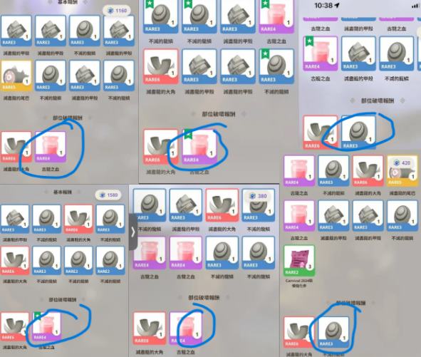 - 1部位破壊 の報酬では、R6角は出現しない。