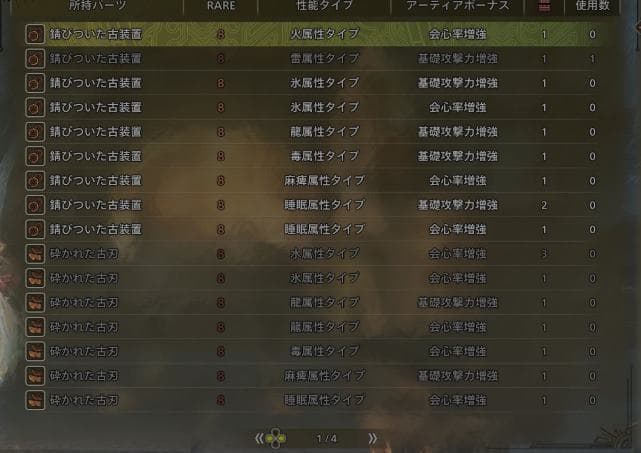 属性ライト用アーティアが欲しいのに復元ボーナスが装填x2+会心x3が結構出るのに装填x2+攻撃x3が全然出ねぇ・・・