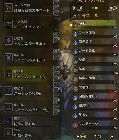 距離3 火耐性 加護 耳栓 風圧 護竜全部発動させつつ連撃5連撃強化2で最低限の火力も盛れる
