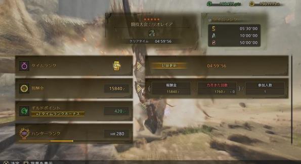 リオレイアでSは5分34秒39で4秒足らんかったからお願いぶっぱかなり狙わないとしんどそう