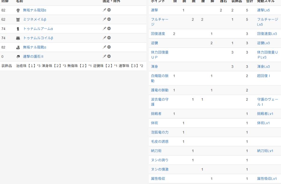 回復量UP3と回避性能2を揃えたうえで連撃を増やして渾身削っていったら期待値一番いいのがこうなった