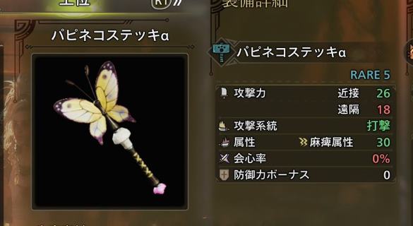 オトモのラバラニードルが麻痺20で今回のが麻痺30だからね