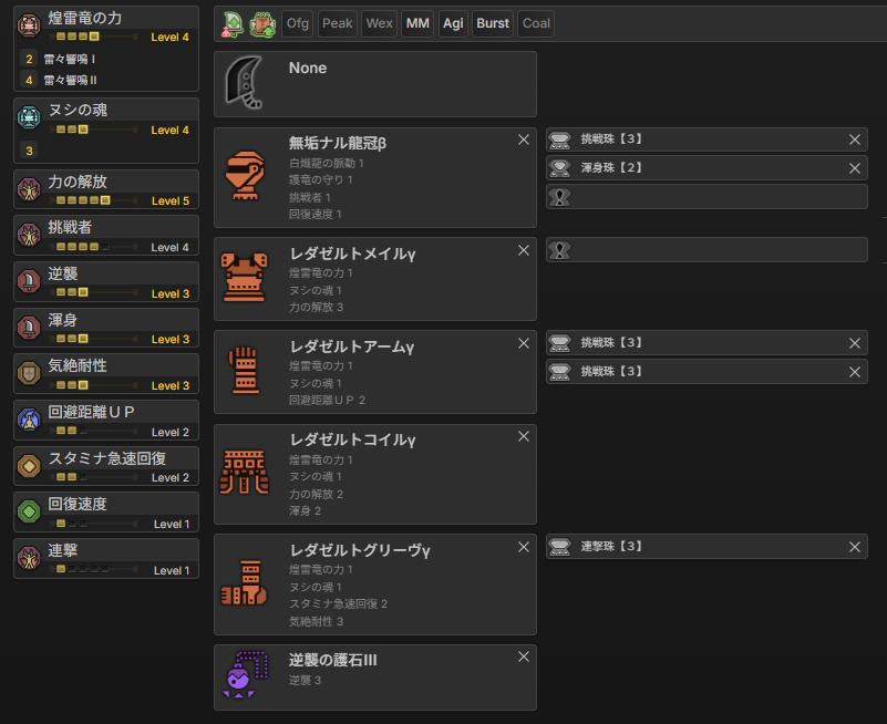 解放5挑戦4逆襲3渾身3気絶3スタ急2回避2連撃1回復1+スロ1×2