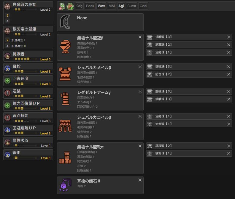 加速超回復だと耳栓2距離2フルチャ5逆襲3挑戦3連撃1早復3弱特1その他みたいな感じだな