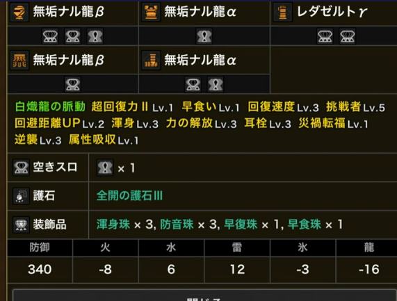 耳栓外して力解放入れるとか、早飲み外して耐性入れるとかお好みで!