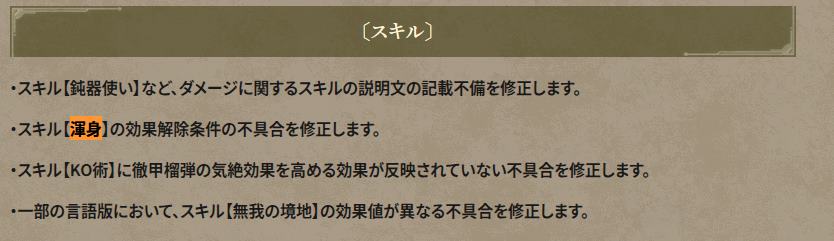 ・スキル【渾身】の効果解除条件の不具合を修正します。