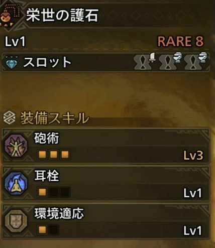 レア8一個出たけどガ強2砲術1砲弾装填1でスロが武器スロ1防具スロ1だったわ