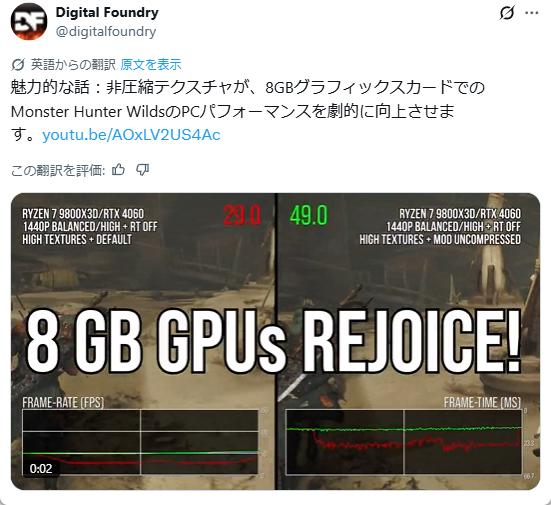 非圧縮テクスチャMODをDigital Foundryが検証し、大幅パフォーマンスアップ