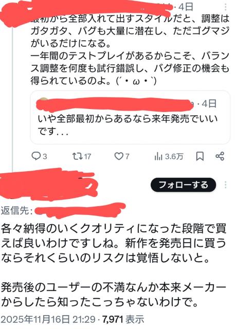 バグは発売後に修正すれば良いってゲーム界隈は常態化してるっぽいけど顧客舐めすぎじゃないかな