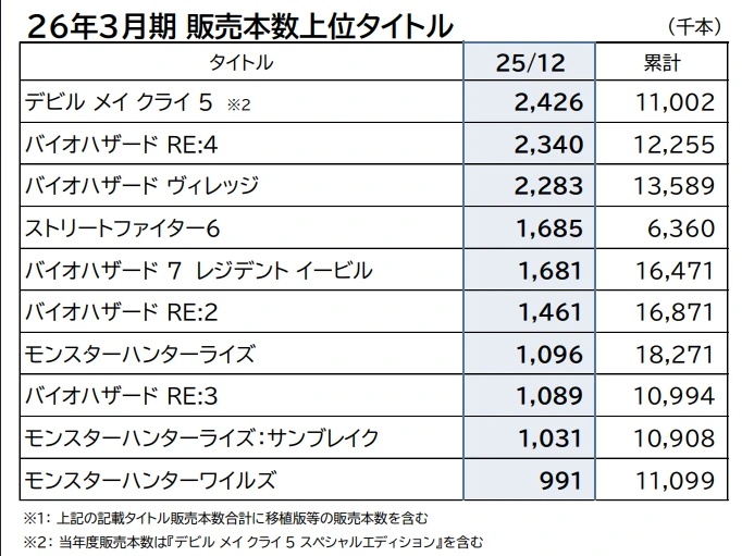 ちなみに売上本数TOP10なのでバイオが出たら確実にワイルズは消えます・・・