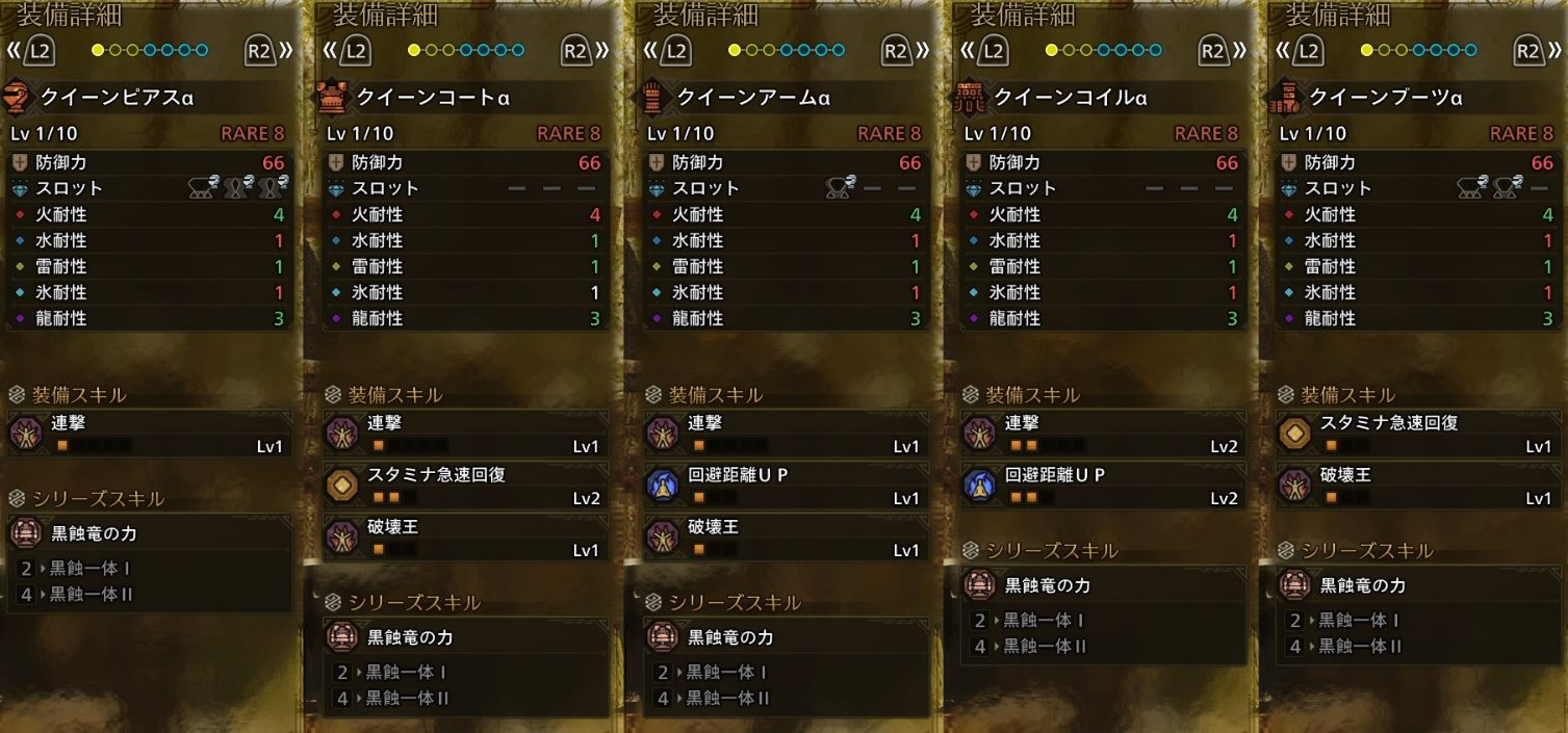 胴 連撃1 スタ急2 破壊王1 黒蝕一体1 スロ無し